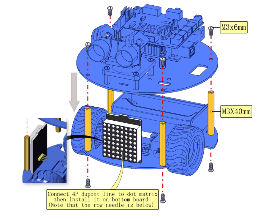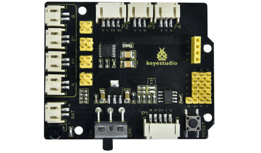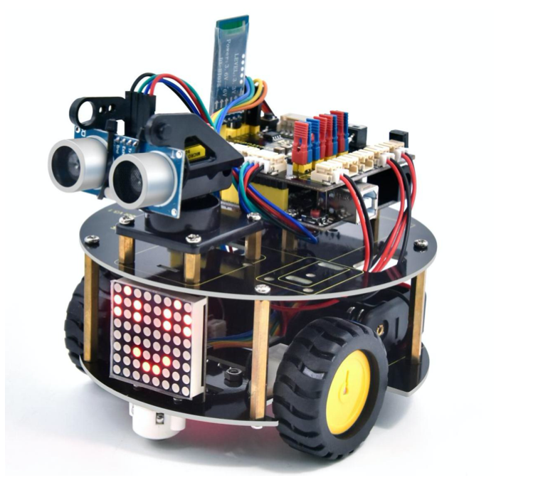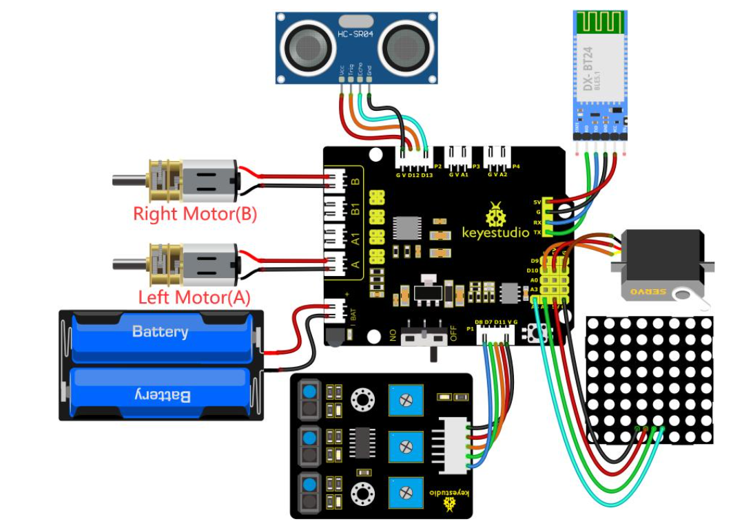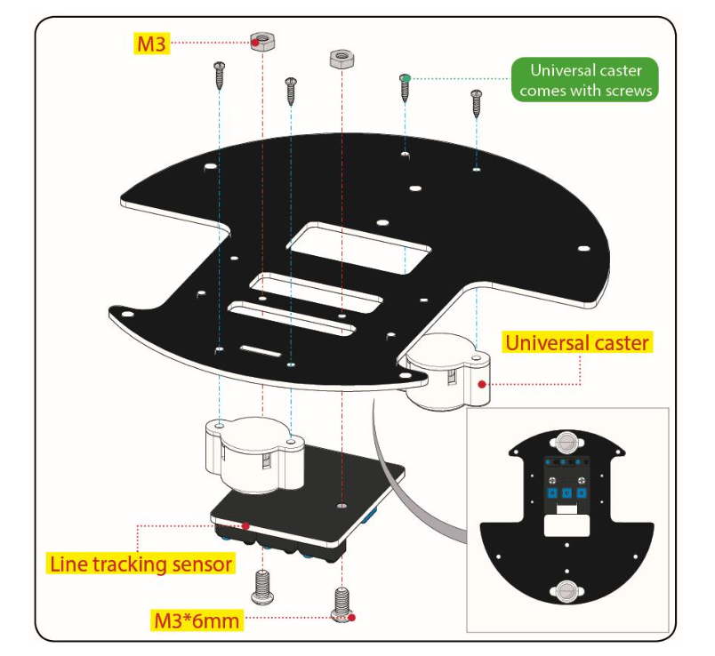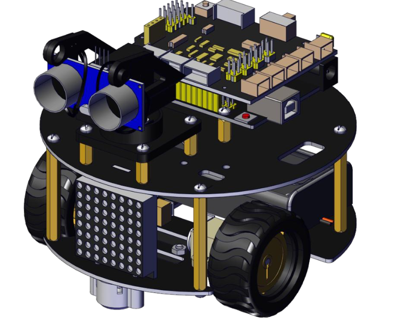 МІЖНАРОДНИЙ УНІВЕРСІТЕТ Факультет кібербезпеки, програмної інженерії та комп'ютерних наук Завантажити інструкцию --- Завантажити інструкцию --- Завантажити інструкцию --- Інструкція зі збирання робота-черепашки на базі Arduino (Keyestudio Smart Turtle Car V3.0) Факультет кібербезпеки, програмної інженерії та комп'ютерних наук Інсталяція Крок 1: Нижнє моторне колесо Факультет кібербезпеки, програмної інженерії та комп'ютерних наук Підготуйте наступні деталі: Гвинт з круглою головкою M3×6 мм — 2 шт.Гайка M3 з нікелевим покриттям — 2 шт. Нижня плата PCB — 1 шт. Датчик лінійного стеження — 1 шт. Універсальне роликове колесо — 2 шт. Факультет кібербезпеки, програмної інженерії та комп'ютерних наук Крок 2: Збірка деталей Факультет кібербезпеки, програмної інженерії та комп'ютерних наук Підготуйте наступні компоненти: ГайкаM2—4шт. Двигун 12FN20 — 2 шт. U-подібне кріплення — 2 шт. Колесо для двигуна N20 — 2 шт. Дріт 2P — 2 шт. Дріт 5P — 1 шт. Гвинт з круглою головкою M2×12 мм — 4 шт. Тримач для батареї 18650 — 1 шт. Гвинт з плоскою головкою M3×10 мм — 2 шт. ГайкаM3—2шт Факультет кібербезпеки, програмної інженерії та комп'ютерних наук Факультет кібербезпеки, програмної інженерії та комп'ютерних наук Факультет кібербезпеки, програмної інженерії та комп'ютерних наук Факультет кібербезпеки, програмної інженерії та комп'ютерних наук Факультет кібербезпеки, програмної інженерії та комп'ютерних наук Факультет кібербезпеки, програмної інженерії та комп'ютерних наук Факультет кібербезпеки, програмної інженерії та комп'ютерних наук Крок 3: Встановлення верхньої плати PCB Факультет кібербезпеки, програмної інженерії та комп'ютерних наук Підготуйте наступні компоненти: Верхня плата PCB — 1 шт. Гвинт з круглою головкою M3×6 мм — 8 шт. Подвійна мідна стійка M3×10 мм — 8 шт. Факультет кібербезпеки, програмної інженерії та комп'ютерних наук Крок 4: Встановлення керуючої плати Факультет кібербезпеки, програмної інженерії та комп'ютерних наук Підготуйте наступні компоненти: Плата V4.0 — 1 шт. Моторний драйвер 8833 (Motor Drive Shield) — 1 шт. Гвинт з круглою головкою M3×6 мм — 4 шт. Факультет кібербезпеки, програмної інженерії та комп'ютерних наук Крок 5: Пластикова платформа для серво Факультет кібербезпеки, програмної інженерії та комп'ютерних наук Підготуйте наступні компоненти: Серводвигун — 1 шт. Гвинт M2×4 — 1 шт. Чорна стяжка (кабельна) — 2 шт. Ультразвуковий датчик — 1 шт. Чорна пластикова платформа — 1 шт. Саморіз M1.2×4 — 4 шт. Саморіз M2×8 — 2 шт. Факультет кібербезпеки, програмної інженерії та комп'ютерних наук Факультет кібербезпеки, програмної інженерії та комп'ютерних наук Факультет кібербезпеки, програмної інженерії та комп'ютерних наук Факультет кібербезпеки, програмної інженерії та комп'ютерних наук Крок 6: Фінальна збірка Підготуйте наступні компоненти: Гвинт з круглою головкою M3×6 мм — 12 шт. Мідна стійка M3×40 мм — 4 шт. Модуль Bluetooth — 1 шт. Матриця 8×8 світлодіодів — 1 шт. Перемичка (Jumper Cap) — 8 шт. Факультет кібербезпеки, програмної інженерії та комп'ютерних наук Факультет кібербезпеки, програмної інженерії та комп'ютерних наук Факультет кібербезпеки, програмної інженерії та комп'ютерних наук Крок 7: Схема підключення Факультет кібербезпеки, програмної інженерії та комп'ютерних наук МІЖНАРОДНИЙ ГУМАНІТАРНИЙ УНІВЕРСІТЕТ Факультет кібербезпеки, програмної інженерії та комп'ютерних наук